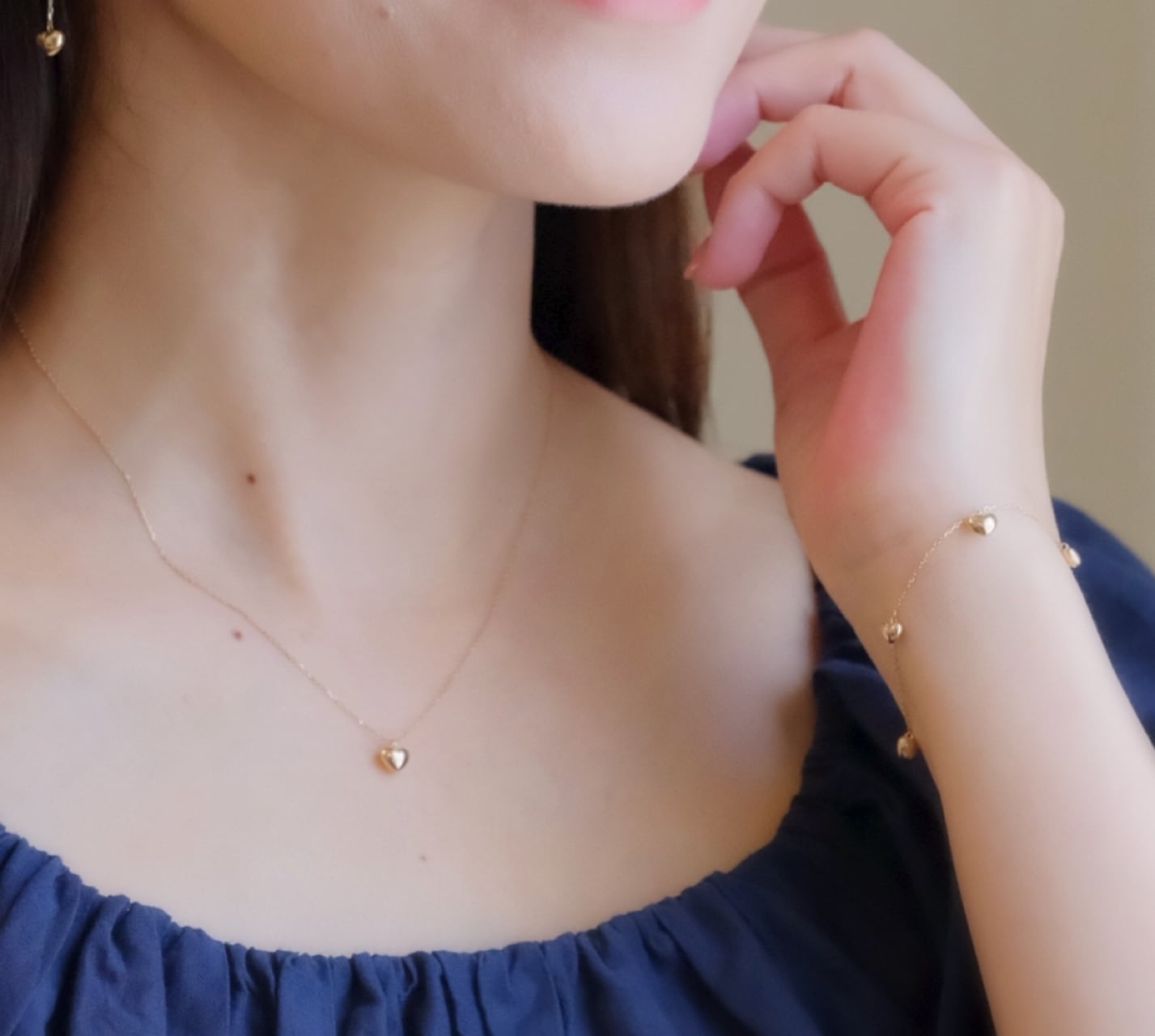 シンプルな1粒のハートが大人可愛いく光るペンダントが加わりました。