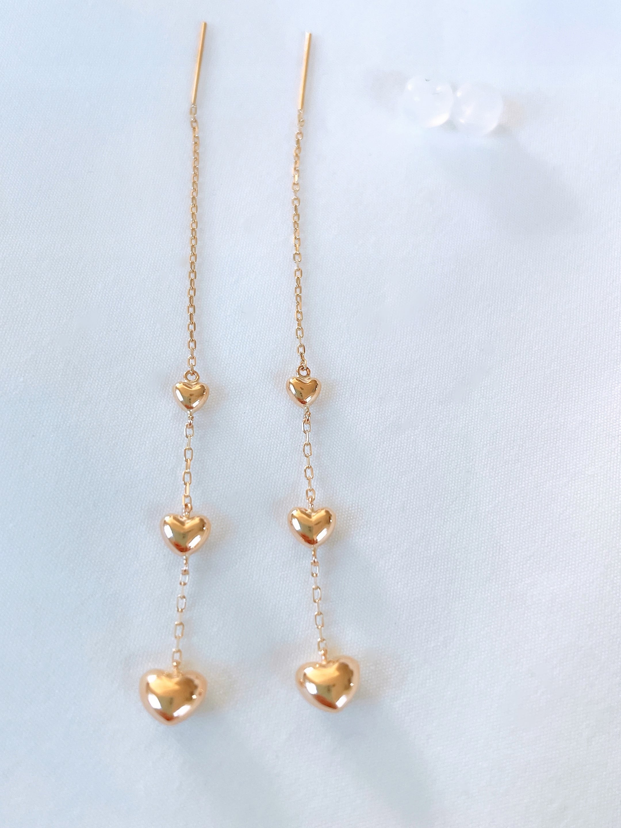 3つの大中小のハートが揺れるアメリカンピアスが加わりました。