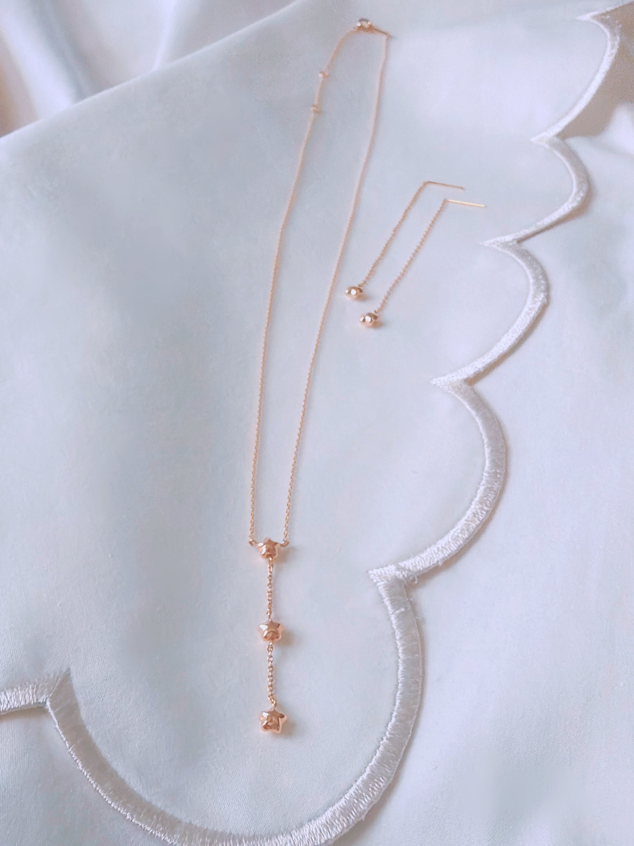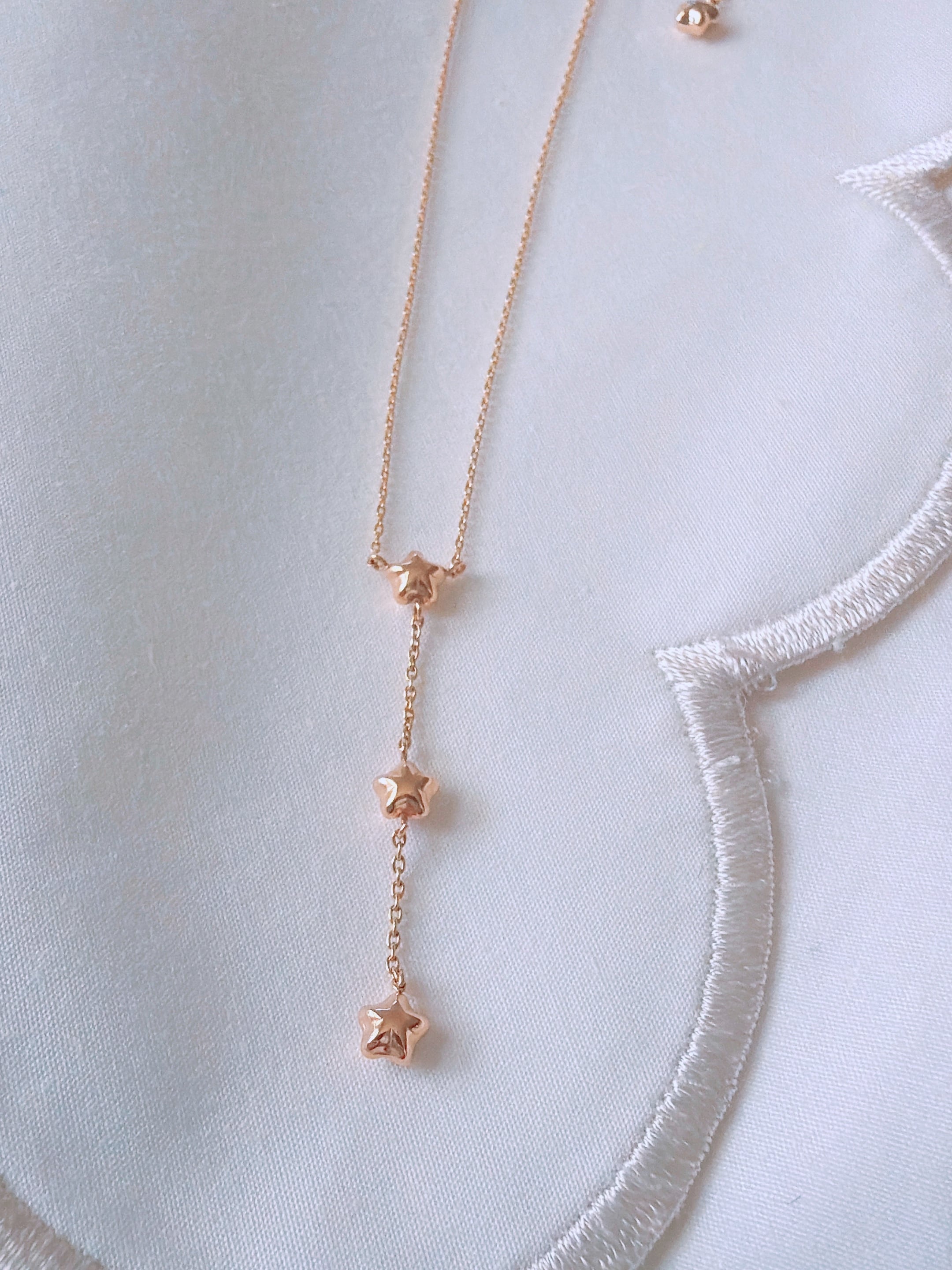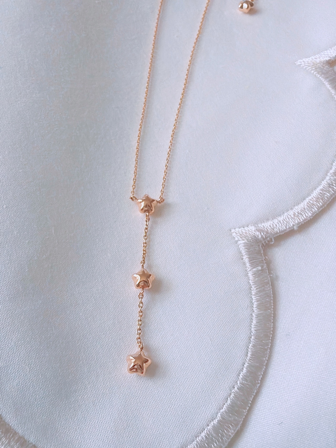 小ぶりのスターモチーフを3連にあしらったY字ネックレスは、