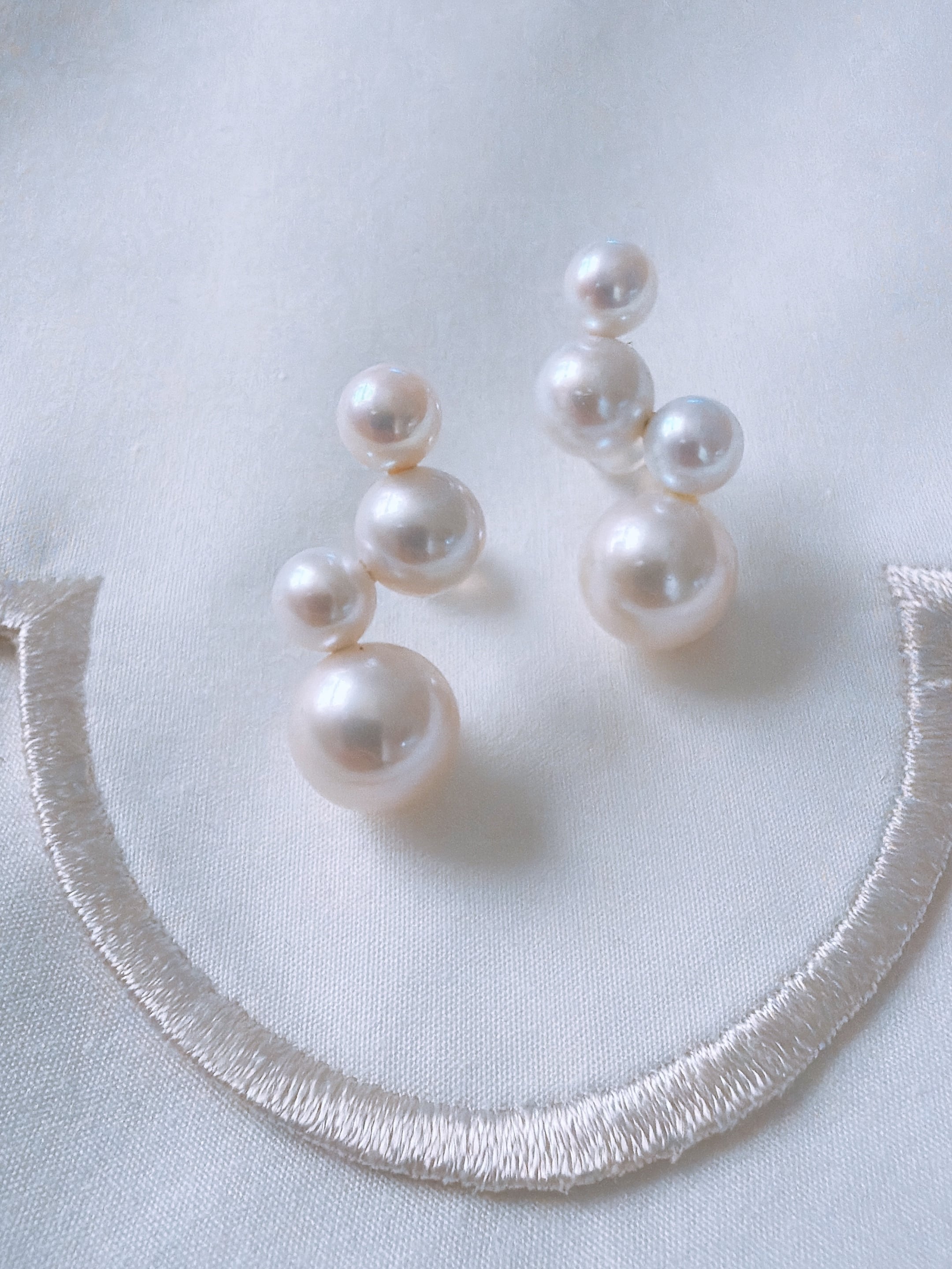 丸みの異なるパールが寄り添うことで、柔らかな立体感が生まれ、