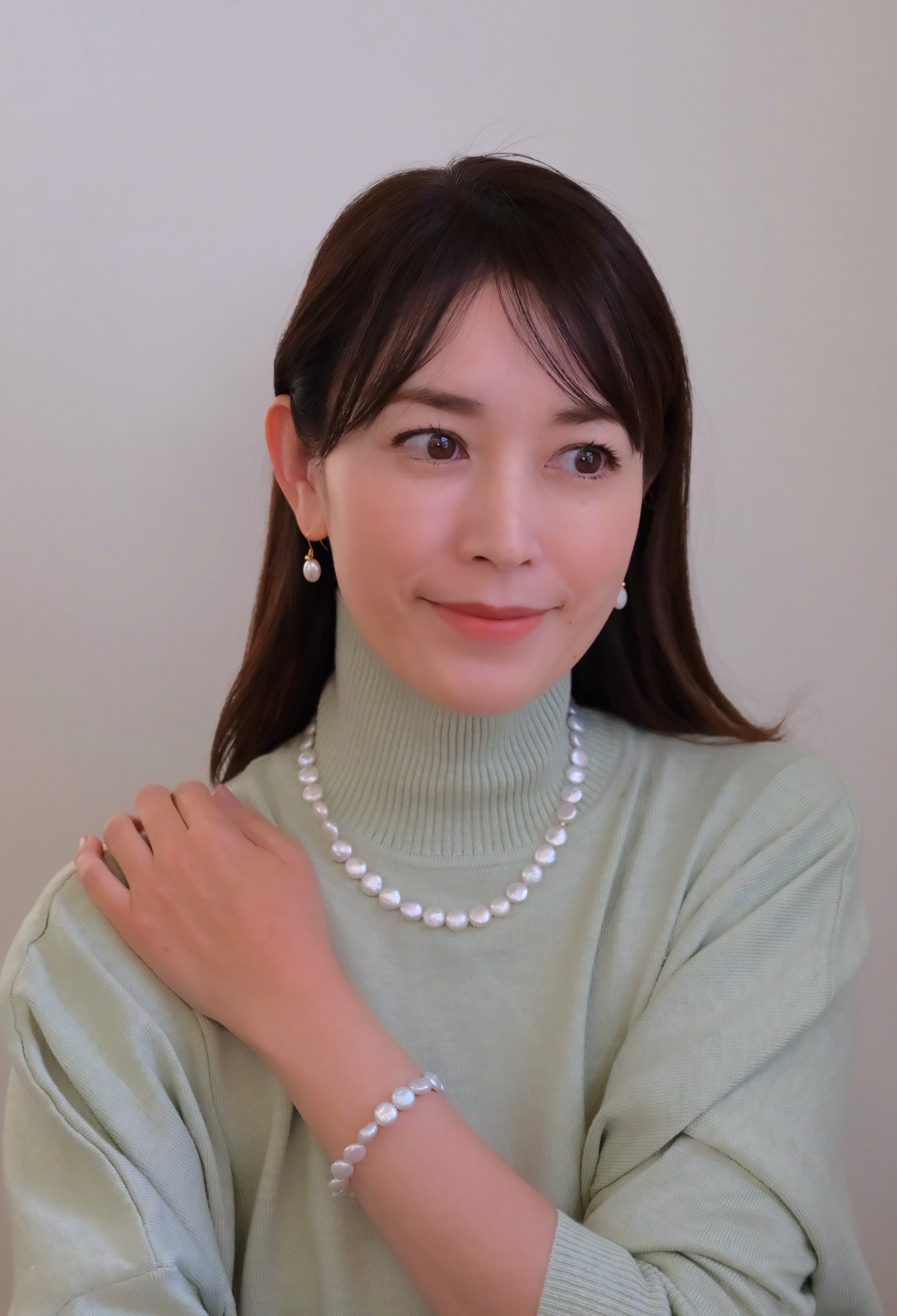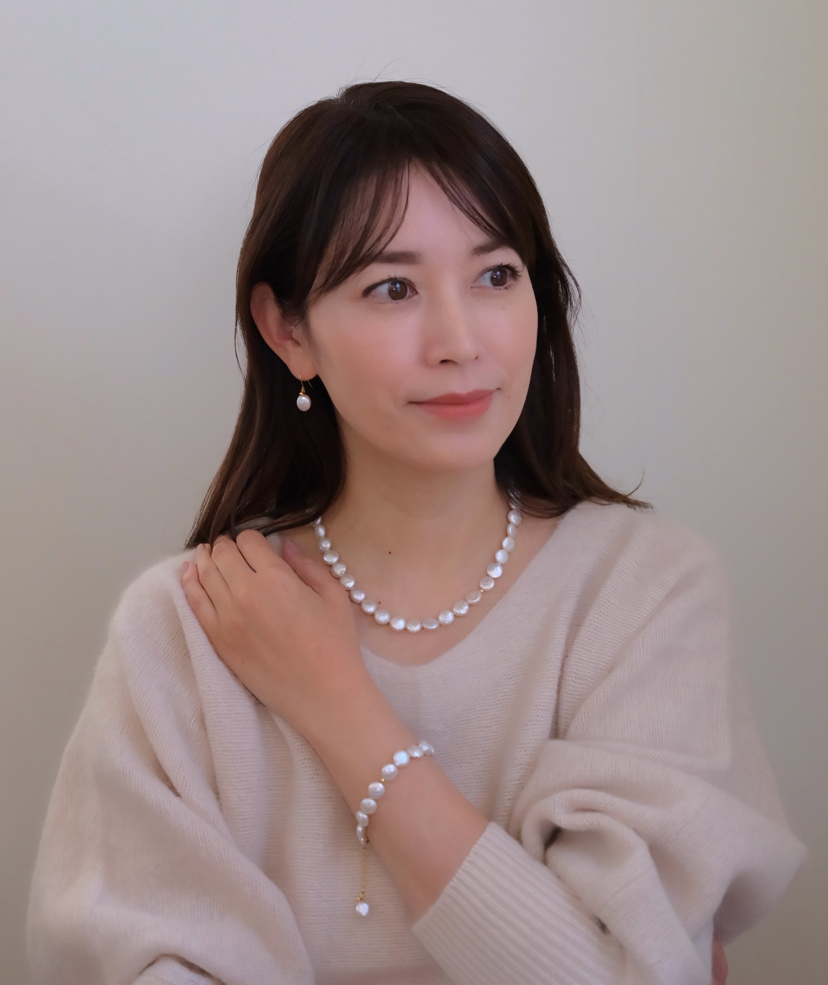 円形ではない平らなパールのため肌に優しく沿い