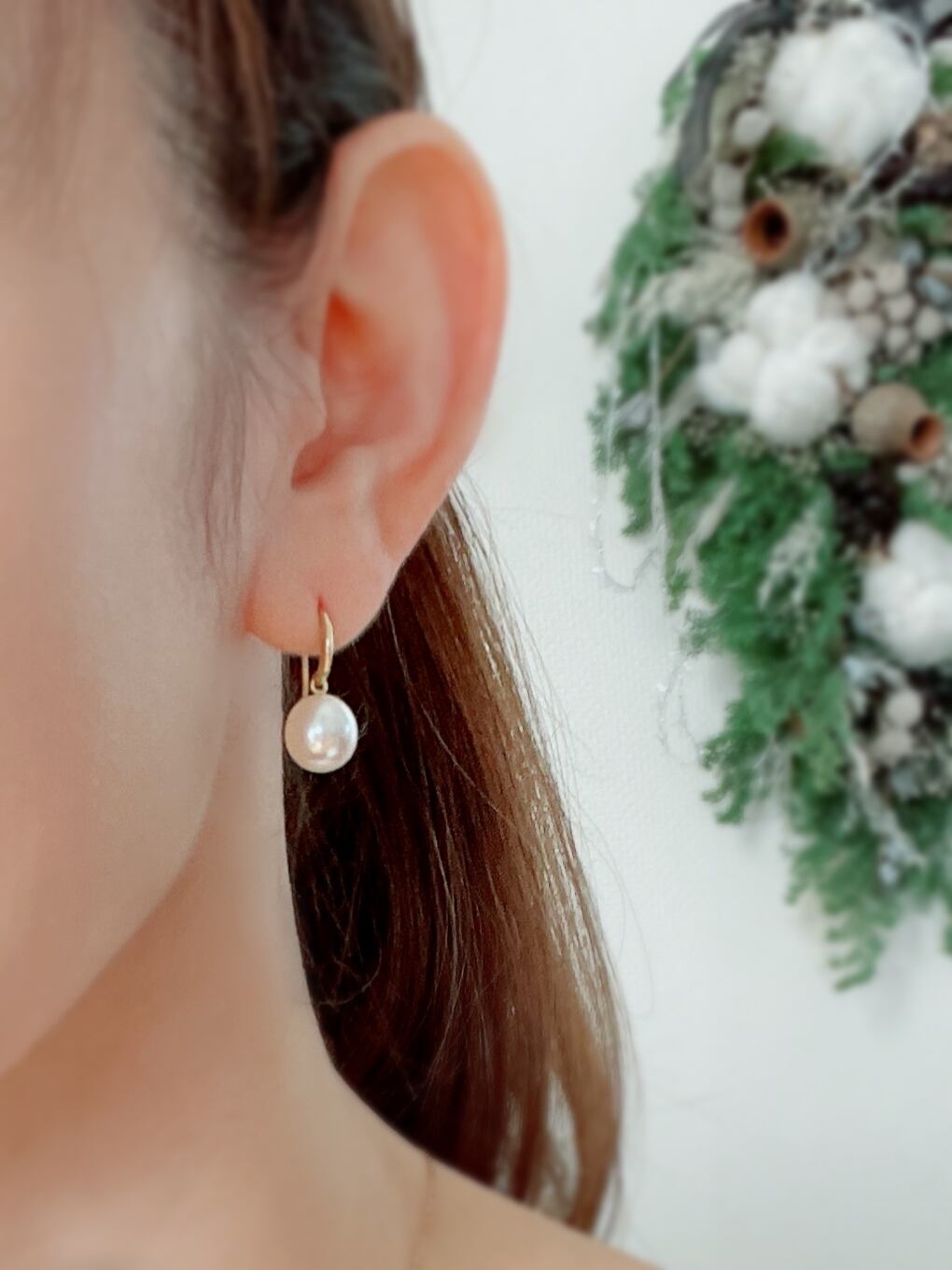 simpleな淡水パールピアスは、マスクにも