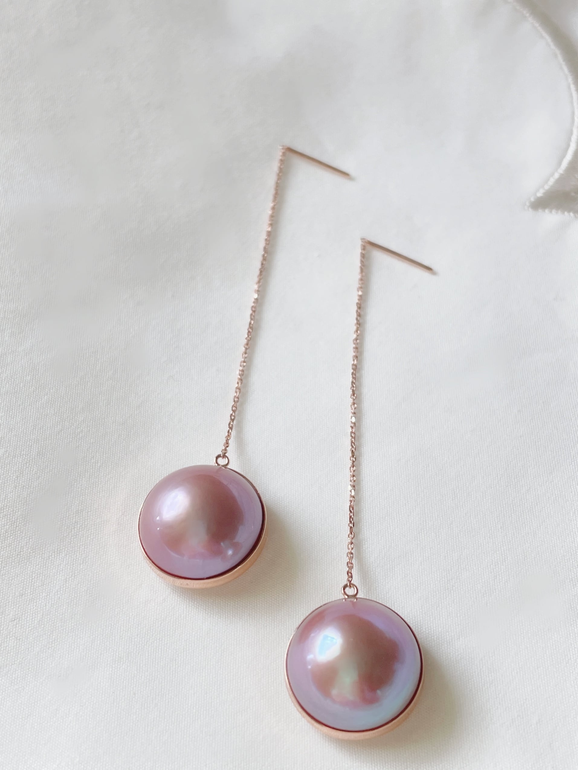ピンクラベンダーハーフパール チェーンピアス・イヤリング
