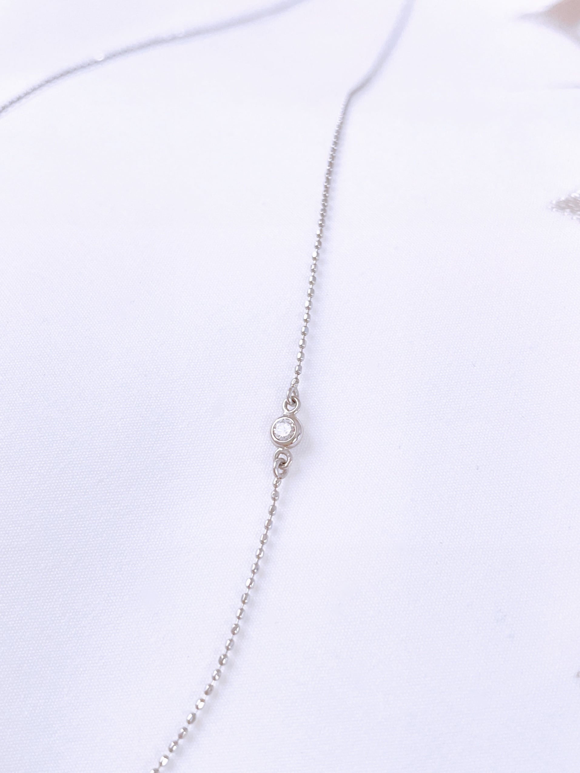0.05ctのダイヤモンドを一石セットしたK18ホワイトゴールドにアジャスター付きカットボールチェーンを合わせました。